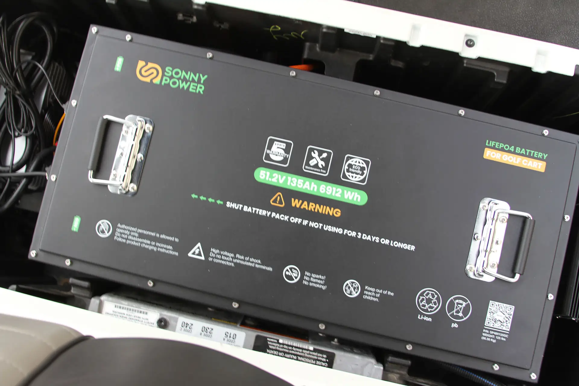 Sonny Power Co.’s 36V / 48V / 72V Lithium Golf Cart Batteries, built with CATL’s advanced LiFePO4 cells, offer over 6000 recharge cycles and a 10–12 year lifespan, significantly outperforming other lithium or lead-acid batteries. These batteries operate efficiently down to -20°F, delivering twice the power of lead-acid batteries at a quarter of the weight. They come with an 10-year limited warranty, covering defects for the original purchaser, with full coverage for the first three years and prorated coverage thereafter. Register your battery within 60 days of purchase at sonnypower.com/product-registration/ to receive full warranty benefits.